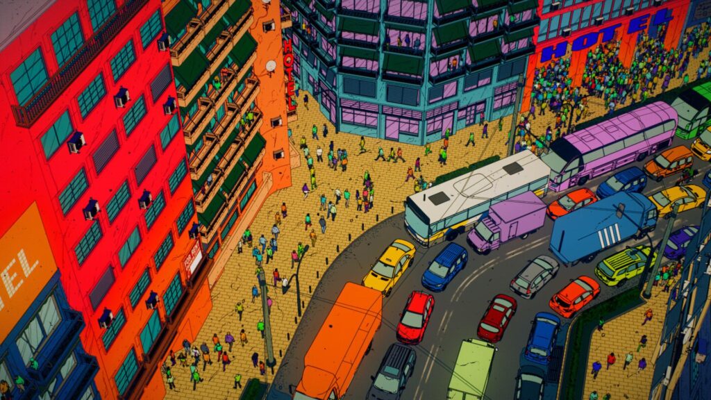 In short, silent scenes, we watch modern- day Athens, Greece, where old buildings, offices, open air cinemas etc., are rapidly transformed into hotels and other places of accommodation for tourists. The city is suffocating by countless tourists, who are piling up in hotels, in various sites, on beaches, bars, restaurants, etc. It’s a complete chaos,